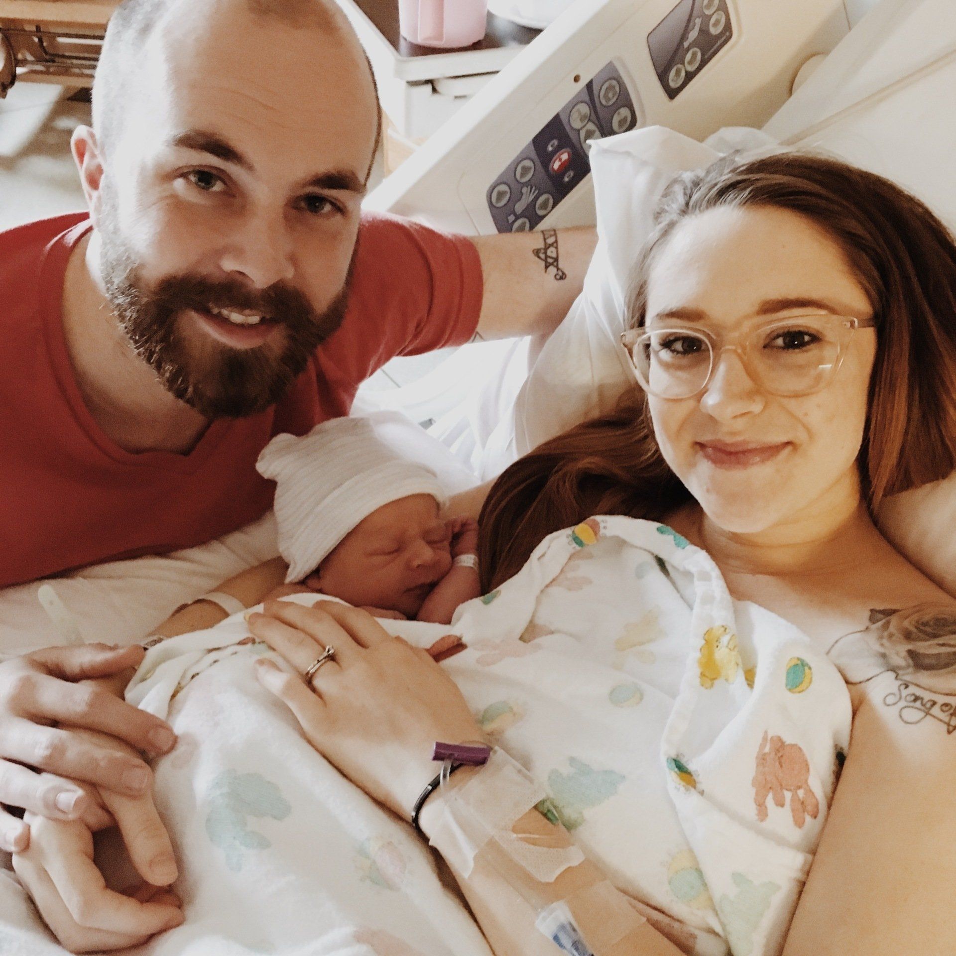 Aaron quickly seized the moment and made what we now call - his first dad joke. “Now Sarah has officially delivered twice to you guys,” he said. (I had once delivered them Chick-fil-A chicken and now a baby) Like I said dad joke. Anyways they put Liam directly on my chest and his cries were the best thing my ears have ever heard. I don’t remember the rest of the delivery after that. I don’t remember any blood, the delivery of the placenta or the stitches. I just remember him on my chest looking me in the eyes. They did a delayed cord clamping where I cut the cord. Then they checked all of his vitals while I was doing skin to skin with him. He was doing so well they just left him on me and never took him away to a nursery to be checked. He found his way to my right breasts and began nursing. Soon after this both of our mothers came into the room to see their new grandson for the first time. It was a very special moment to have them there with us at the hospital. After a few hours, they took him to do skin to skin with his daddy. I felt amazing. Since I didn’t feel anything I didn’t realize how much my body went through. I asked if I could get up to use the restroom and shower. As I got up and walked to the bathroom I felt very light-headed. Once I sat down I looked at the nurse assisting me and told her that I was going to pass out. I blacked out and it scared the nurse so much she pulled the entire emergency cord out of the wall. Many nurses and a Dr. flooded the room where Aaron couldn't move cause he was shirtless with Liam laying on his chest. He knew I’d be fine because this wasn't the first time I’ve passed out. The Dr. began asking me questions to make sure I was okay and then I was assisted back to the bed. I then was given a red bracelet that labeled me as “High Risk”. The nurse I had at that point made a scolding type of comment that she had trusted me that I was ready to get up and that she wasn't going to let me up anytime soon because I broke that trust. I felt embarrassed and cried. Not sure if it was just a surge of hormones that made me take the comment that way but that’s how I remember it going. Memories are a funny thing. Anyways I was soon given an iron pill to up my blood supply and FOOD. They brought me two servings of pasta from the cafe downstairs and I quickly felt better. I also was allowed up to shower with my moms' assistance and that made me feel ready to conquer it all. As the day progressed Aaron decided to leave with my mom to get us coffee from Claro. Once he got back and had his first cup the nurses taught us how to soothe Liam with a swaddle. Aaron looked at me and said, “Okay… I think I can do this. Coffee and swaddles are all I need.”
